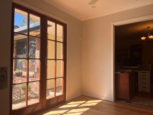這個小廚房是新建的三個房間之一,位於原本舊車庫的建地。雖然空間僅約 2.9 × 2.8 米,卻是核心樞紐——連接舊區與新區,不只是簡單的廚房,還兼具走廊、社交中心的功能。透過法式門 就能通往主要戶外空間,無論是聚會、烹飪或聊天都十分方便。